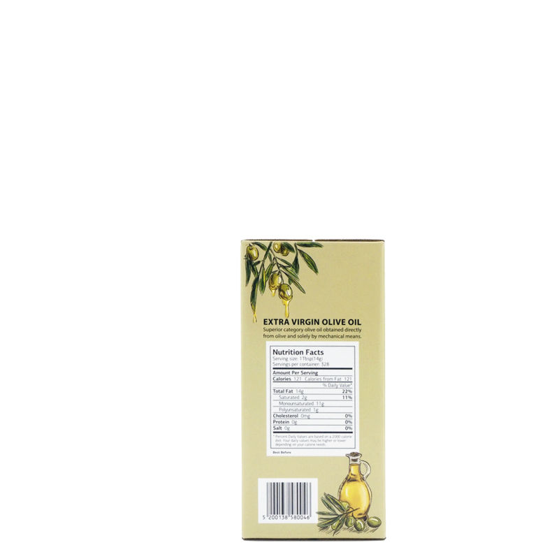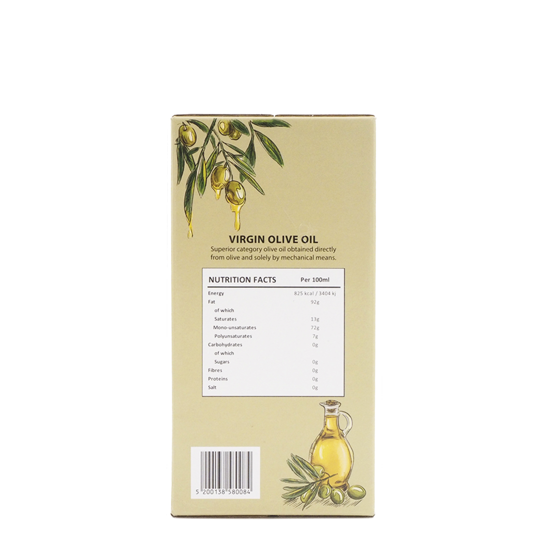So the olive oil is obtained through a purely natural processing, making a natural fruit juice ready to be consumed and enjoyed. It should be noted that the olives are carried to the mill on the day of the harvesting, thus avoiding fermentation, rancid, musty and fusty sediment, as well as the loss of their aromatic and phenolic components, producing an extra virgin olive oil. This fine quality product is properly packed in modern facilities, meeting all packaging requirements to prevent light oxidation until the time of consumption.