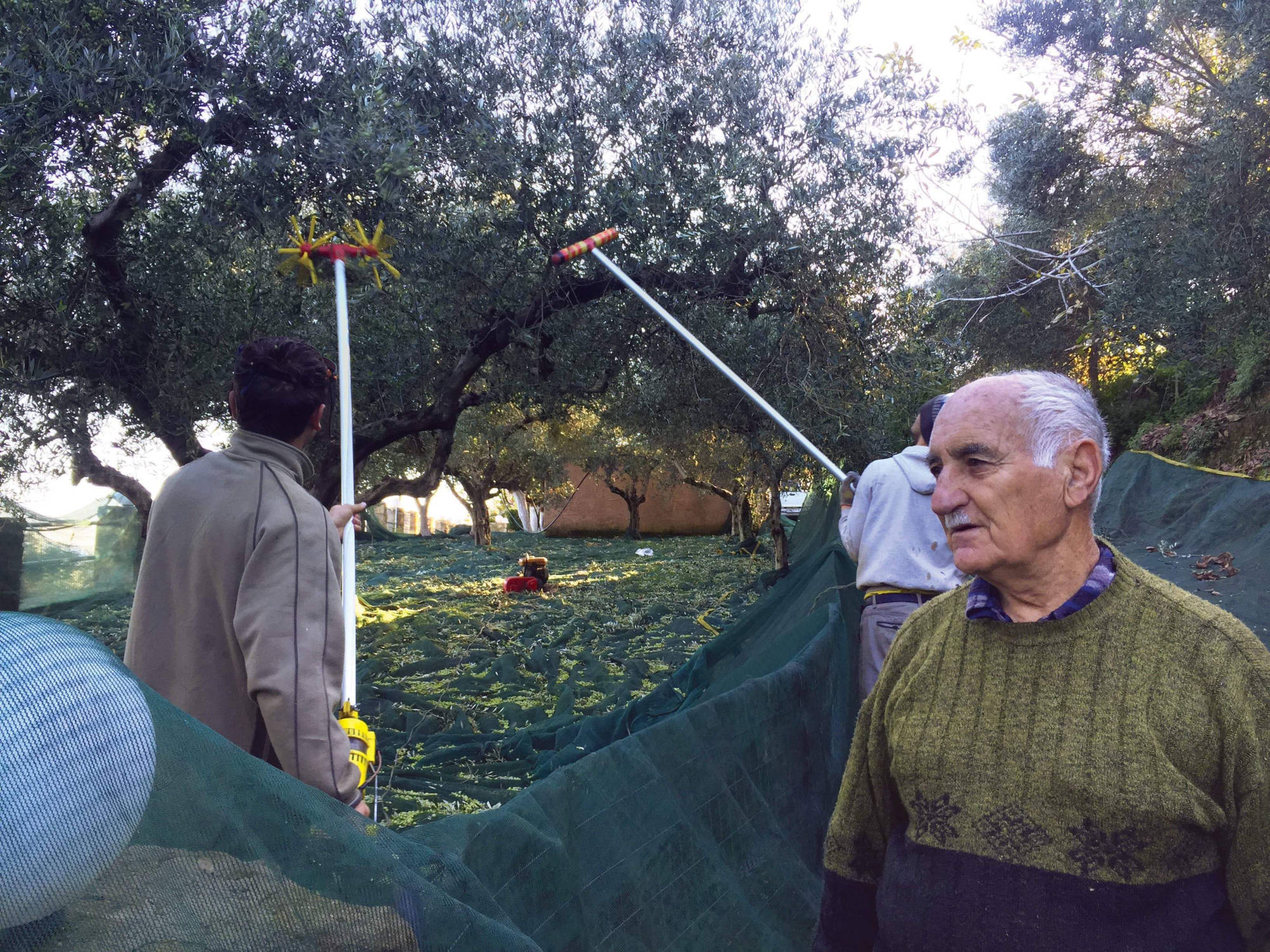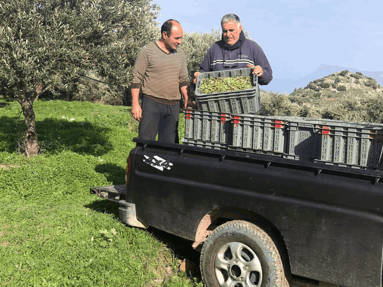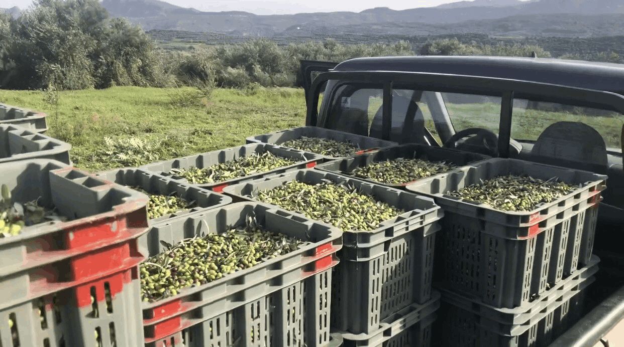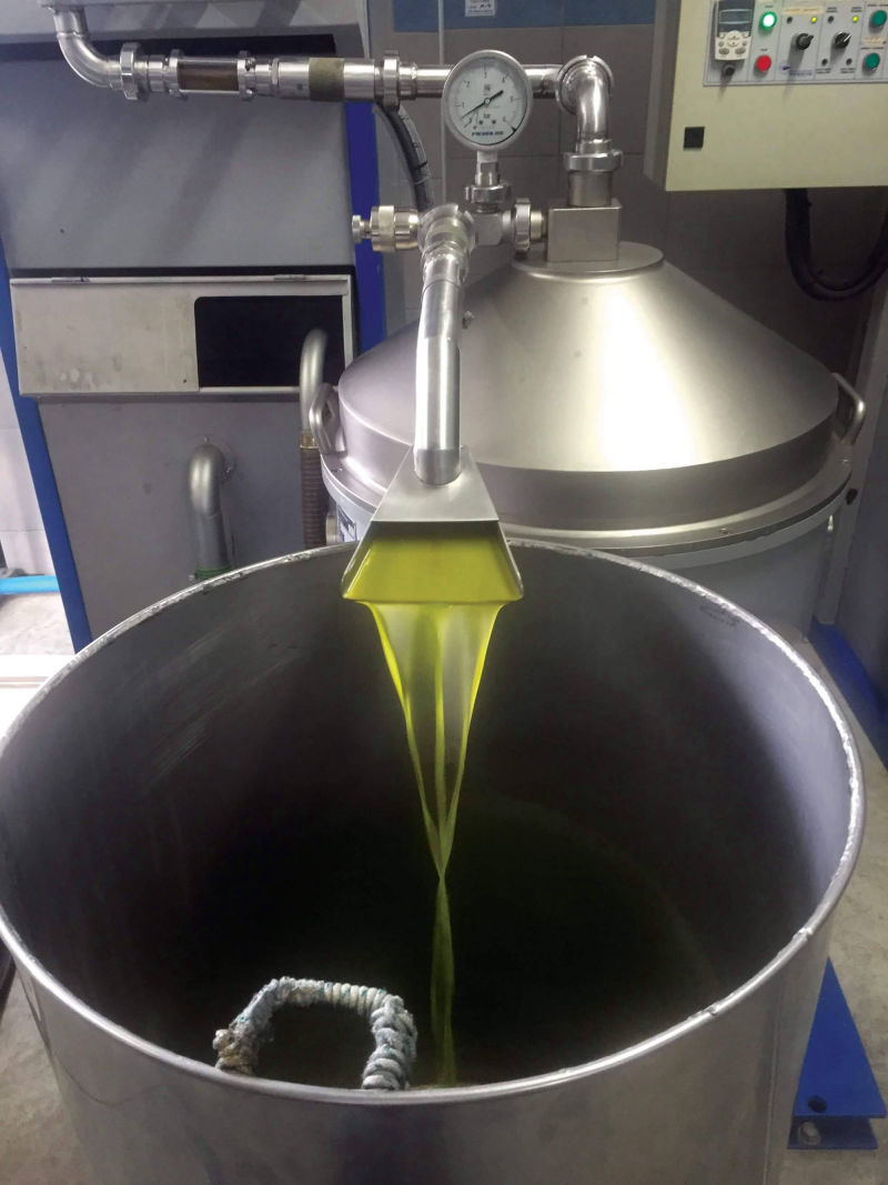 The olive fruit is picked at the finest maturity stage (shading from green/yellow to black/ purple), when the content in phenolic compounds is sufficient and the aromatic